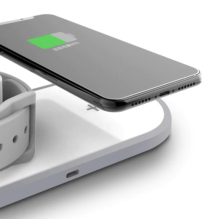 Consolidate your charging setup with this versatile 3-in-1 wireless charger, engineered to power your smartphone, smartwatch, and earbuds simultaneously. Delivering 1200 mA output through a TYPE-C interface, it provides dependable fast charging across multiple device types. The status indicator keeps you informed of charging progress, whilst the minimalist white finish integrates seamlessly into any environment. Its portable form factor means you can maintain your charging capability whether at home, in the office, or on the move. Eliminate cable clutter and streamline your daily routine with this efficient charging solution.